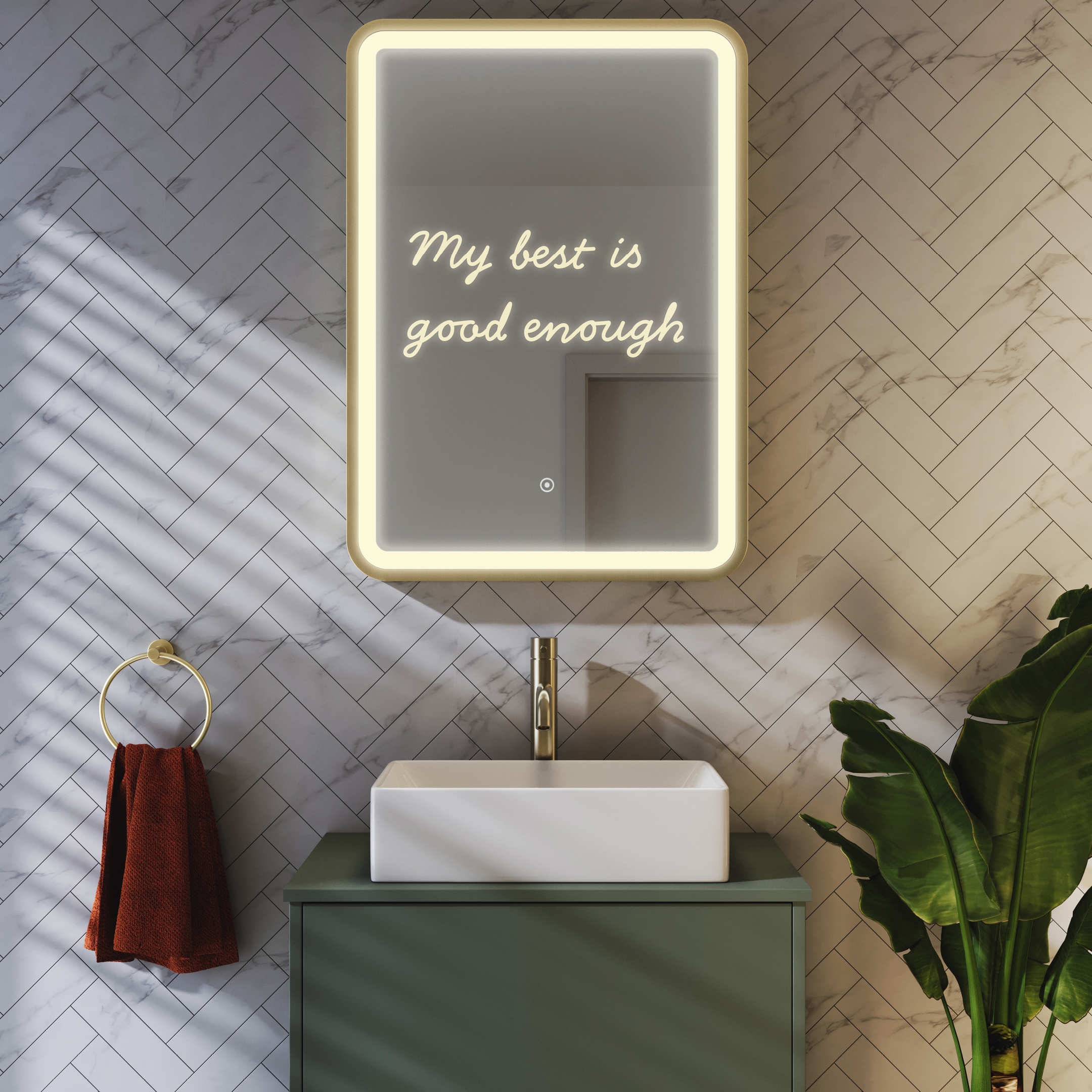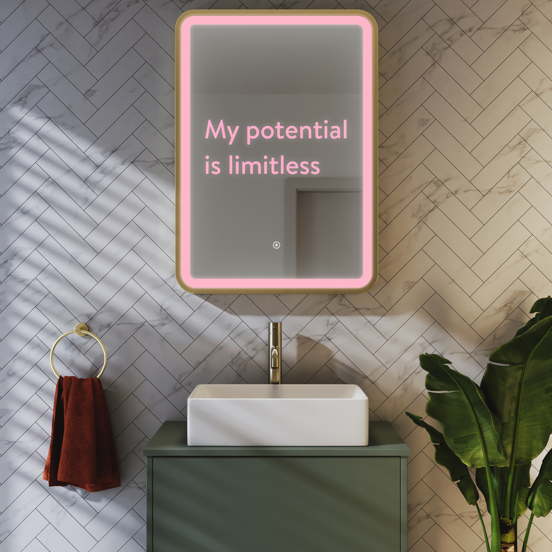 That's why a bathroom mirror designed to radiate positive energy from within you by displaying words of affirmation, and to ensure you’re always feeling like the best version of you, could really help.