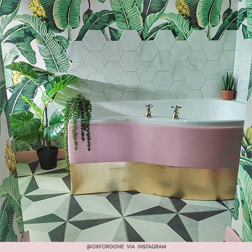 This breathtaking bathroom from @oxfordone features a totally wild and wacky combination of colours, but we’re here for it! If you’re up to date with what’s hot in bathrooms you’ll know that bringing the outside in is, well, in!