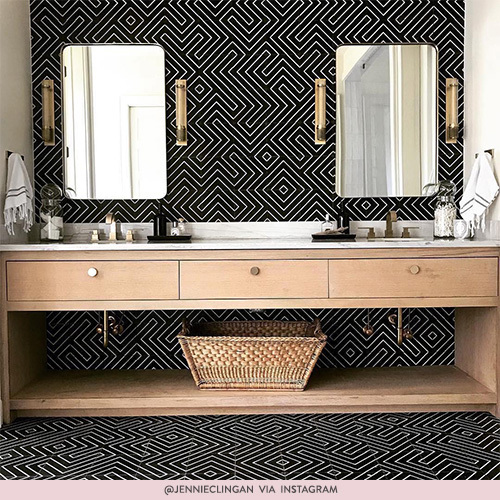 @dropitmod has absolutely nailed it, with the patterned tiles combining beautifully with the more subtle elements. The monochrome tiles make the statement, while the pink tiling brightens and opens up the room. What a look!
