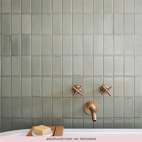 @surface_studio has paired simple pastel tiles with antique brassware - check out the captivating crosshead wall mounted tap handles and sleek brushed spout. The tiles don’t distract from these gorgeous pieces, making it one of our favourite bathroom looks.