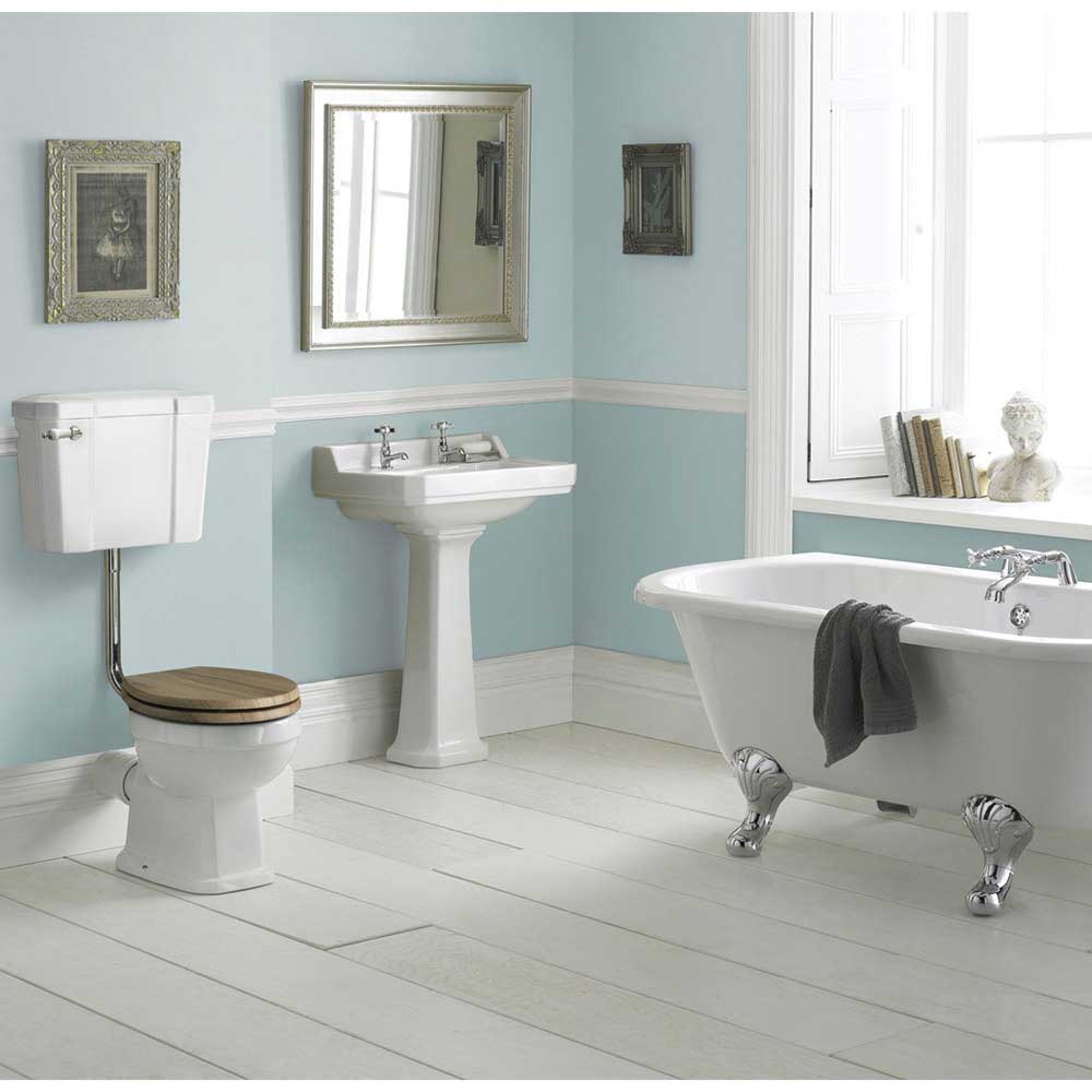 Victorian bathroom ideas and classic features include pedestal basins, antique furniture, chrome fittings and high-level cisterns.