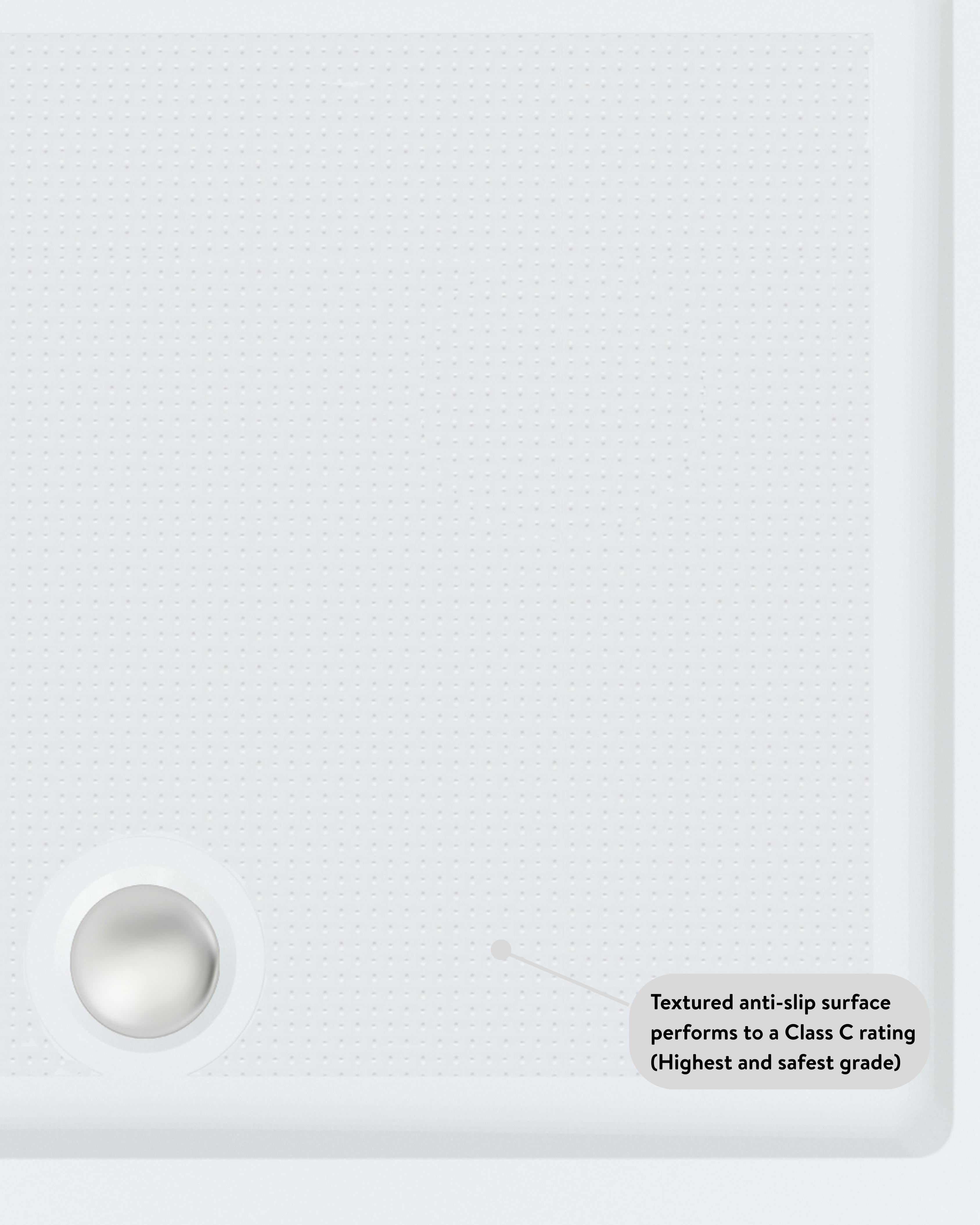 Anti-slip shower trays have a textured surface designed to reduce the risk of slipping without compromising how it feels underfoot. Many will come with a ‘Class’ rating which helps to determine the level of safety and comfort being provided.