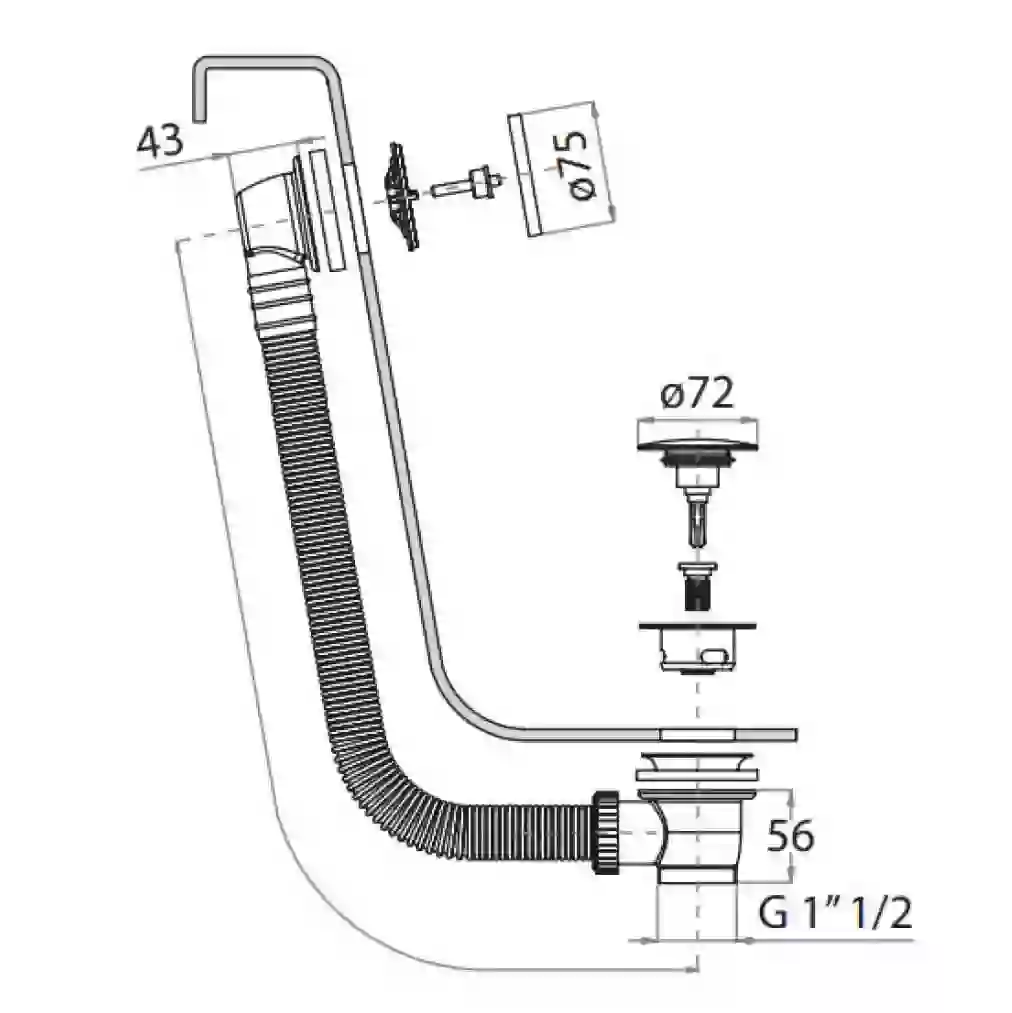 • Flexible overflow pipe for easy installation and fitting inside odd shaped baths