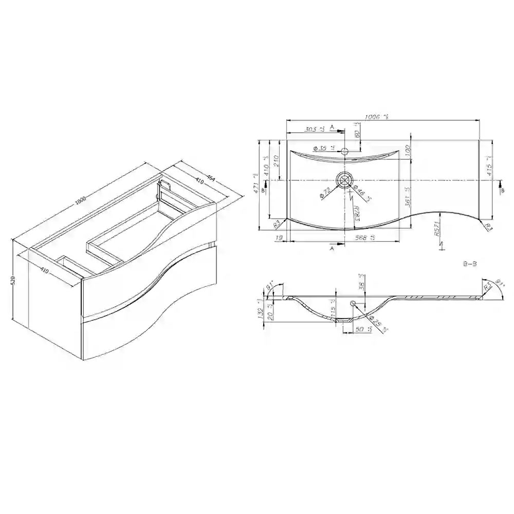 - Top drawer features clever cut-out section ensuring that when a basin waste is added, no storage space is lost